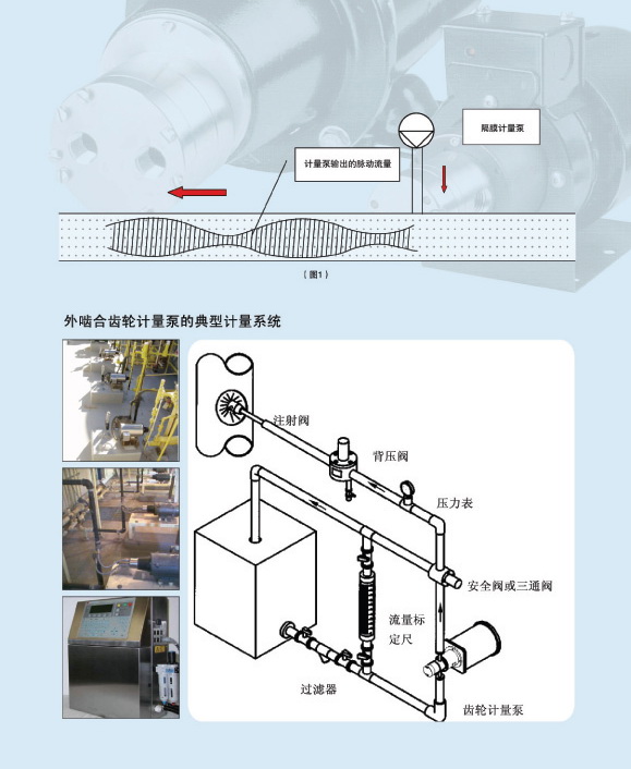 齒輪泵的另一個(gè)優(yōu)勢(shì)在于輸出的流量穩(wěn)定,沒有脈動(dòng)。當(dāng)計(jì)量泵的輸出帶有脈動(dòng)時(shí),由于計(jì)量泵的加入系統(tǒng)的流量不軍云南,造成實(shí)際的計(jì)量精度不均勻。(圖1)有脈動(dòng)輸出的計(jì)量泵,它們的流量的即時(shí)值。在壓力或流量比較大的系統(tǒng)中,脈動(dòng)有時(shí)會(huì)造成管線振動(dòng)等問題,針對(duì)這種現(xiàn)象,有時(shí)必須在系統(tǒng)中安裝足夠容量的壓力緩沖裝置來盡量平衡這種脈動(dòng)。流量上的脈動(dòng)有時(shí)也會(huì)造成一些測(cè)量?jī)x器的失效。泰悉爾磁動(dòng)驅(qū)動(dòng)齒輪泵可以很好地解決這一問題。由于沒有脈動(dòng)它所標(biāo)的流量和精度可以對(duì)應(yīng)到任何實(shí)時(shí)狀態(tài),并因此能夠得到很好的重復(fù)精度。