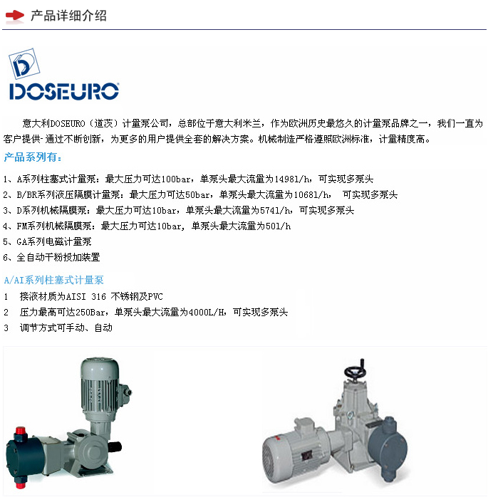 上海煜柯機(jī)電科技有限公司是意大利道茨(DOSEURO)計(jì)量泵的代理商,歡迎了解:021-62288709