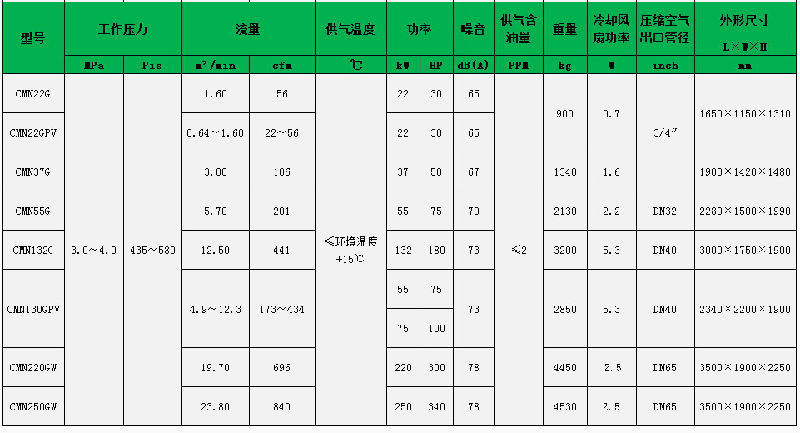 二級壓縮螺桿式空壓機,振動小,噪音低,泄漏量少,效率高,相同功率產(chǎn)氣量大。
