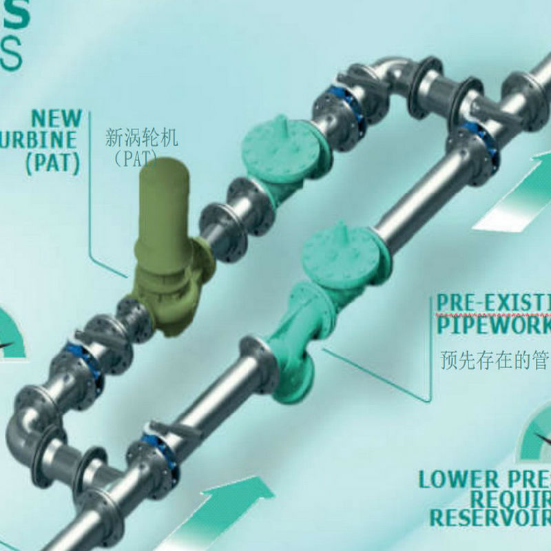 在現(xiàn)有管道中安裝渦輪機(jī),實(shí)現(xiàn)資源的回收:水泵作為渦輪機(jī)主要是通過水泵轉(zhuǎn)動(dòng),將多余的水能轉(zhuǎn)換成電能,新發(fā)的電可以自用也可并入電網(wǎng)使用。