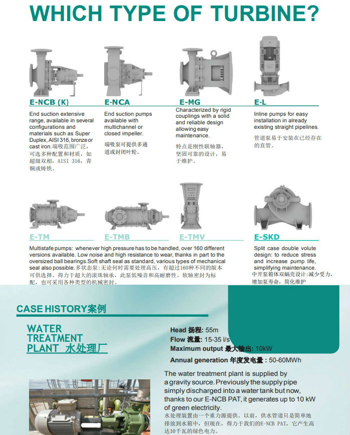 我司提供的PAT系列渦輪機(jī)能夠幫助您實(shí)現(xiàn)能源的創(chuàng)造。